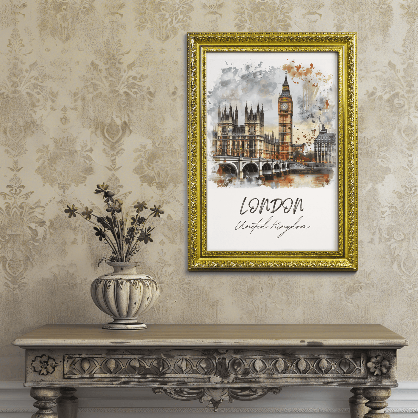 Whether you've walked along the Thames, heard Big Ben chime, explored Westminster, or simply dream of London's historic beauty, this UK cityscape print keeps that British magic alive with an artistic twist. The flowing watercolor style doesn't just show you the landmarks—it interprets them, capturing the emotion and grandeur in soft, blended tones. You can almost hear the chimes of Big Ben, see the Thames flowing past Parliament, feel the history in every brushstroke, and experience London's elegance through a creative lens.